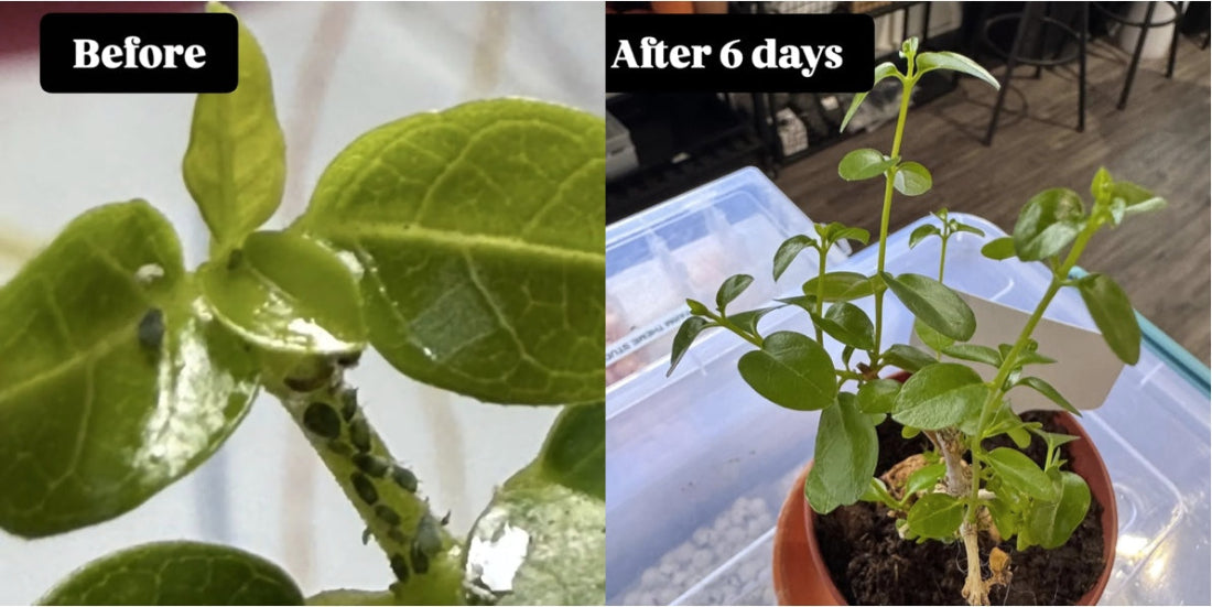 Infested Plant Under 18W Sterilising Germicidal Tube Light for 6 Days without pesticides.